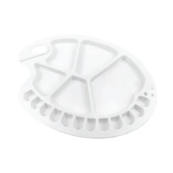 Palette: A high density plastic palette is included. Oil paints can be removed with solvents, and dry acrylic paint peels off.